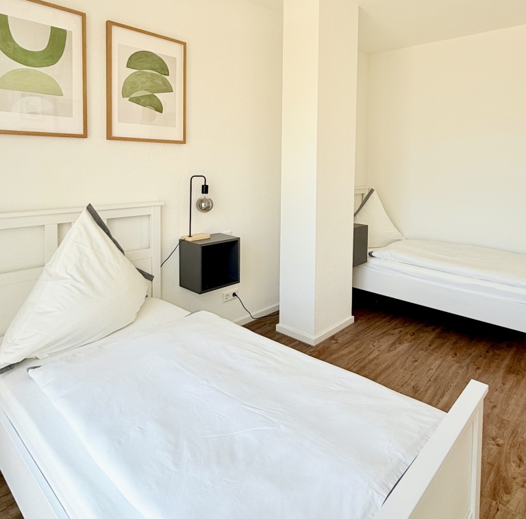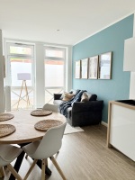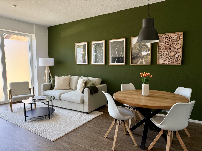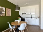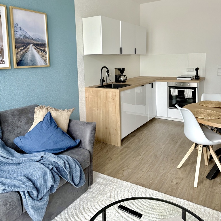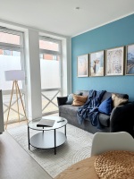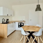 The stylish 55 sqm apartments offer modern comfort for up to 4 guests and are perfectly equipped for a relaxing stay. The open living area invites you to unwind with a comfortable sofa bed and a smart TV, while the adjacent dining area provides space for shared meals. The high-quality, well-equipped kitchen includes modern appliances such as a dishwasher, coffee machine, and everything you need for cooking.