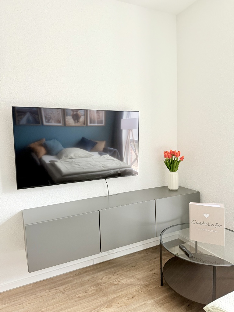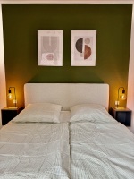 The 55 sqm modern, air-conditioned apartments accommodate up to 4 guests and impress with their high-quality furnishings. An open-plan living area with a seating corner, TV, and dining space seamlessly connects to a fully equipped kitchen – ideal for cooking and spending time together. A bedroom with a box-spring bed ensures restful nights, while the elegant bathroom provides a relaxing atmosphere. Wi-Fi and a washing machine complete the amenities, making this accommodation the perfect choice.